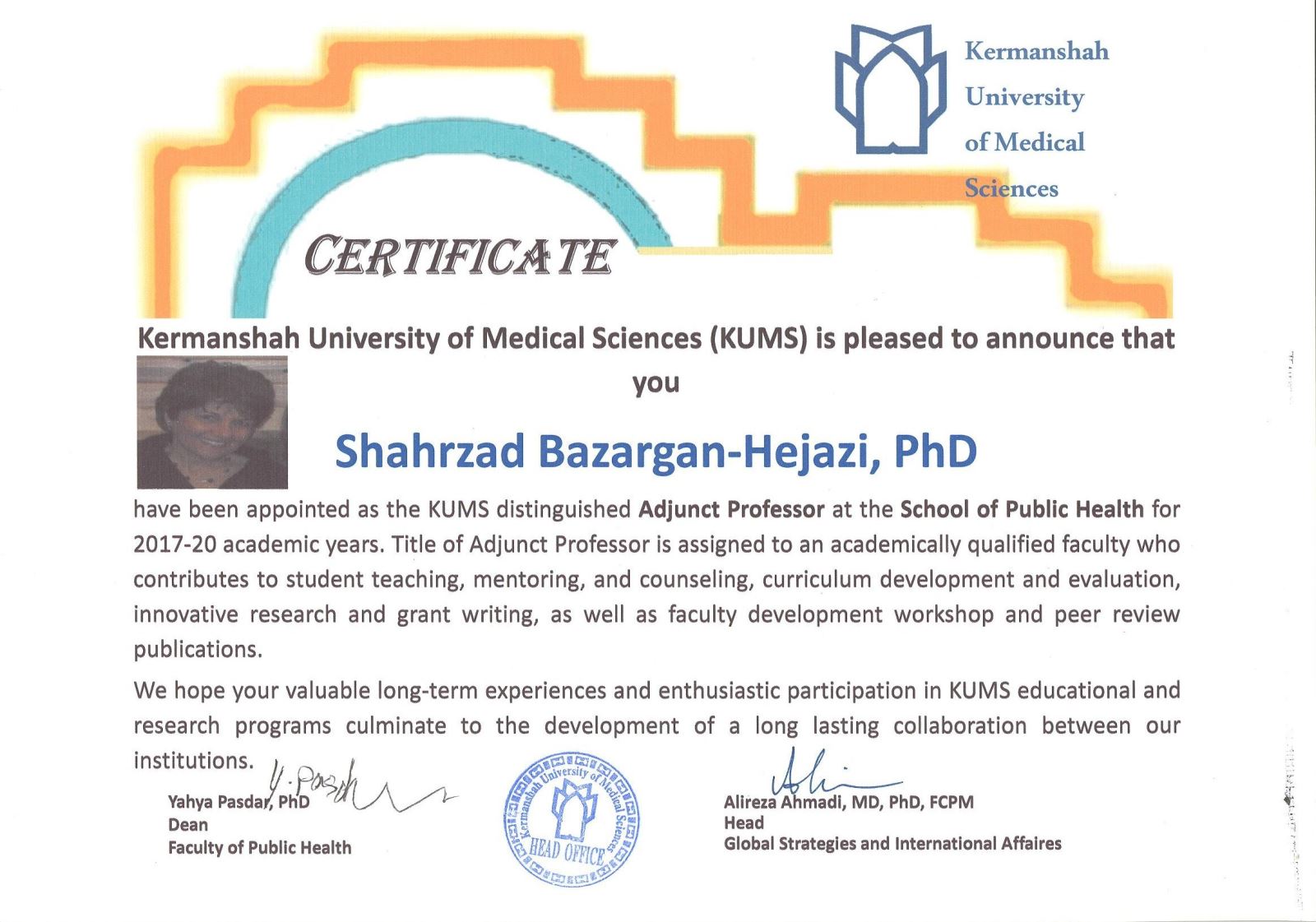 Shahrzad Bazargan-Hejazi, PhD. She is a Professor of Medical Sociology in the Department of Psychiatry and Pediatrics at Charles Drew University of Medicine and Science (CDU) in Los Angeles, California with a joint appointment as an Adjunct Professor in the Department of Psychiatry at David Geffen School of Medicine at University of California at Los Angeles (UCLA), Los Angeles, CA. As a Medical sociologist and health services researcher she has been the lead investigator and co-investigator in several projects related to the social aspects of disease and illness; youth empowerment health advocacy projects; family and community violence prevention programs for teens and adolescents; and health services utilization improvement for Head Start families, and underserved minorities, particularly those affected by depression, injury, violence, and alcohol problems.