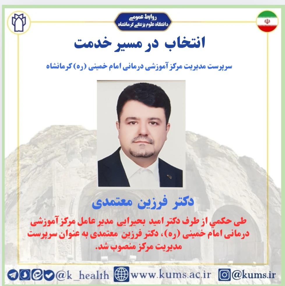 دکتر فرزین معتمدی به عنوان سرپرست مدیریت مرکز آموزشی درمانی امام خمینی ره کرمانشاه منصوب شد.