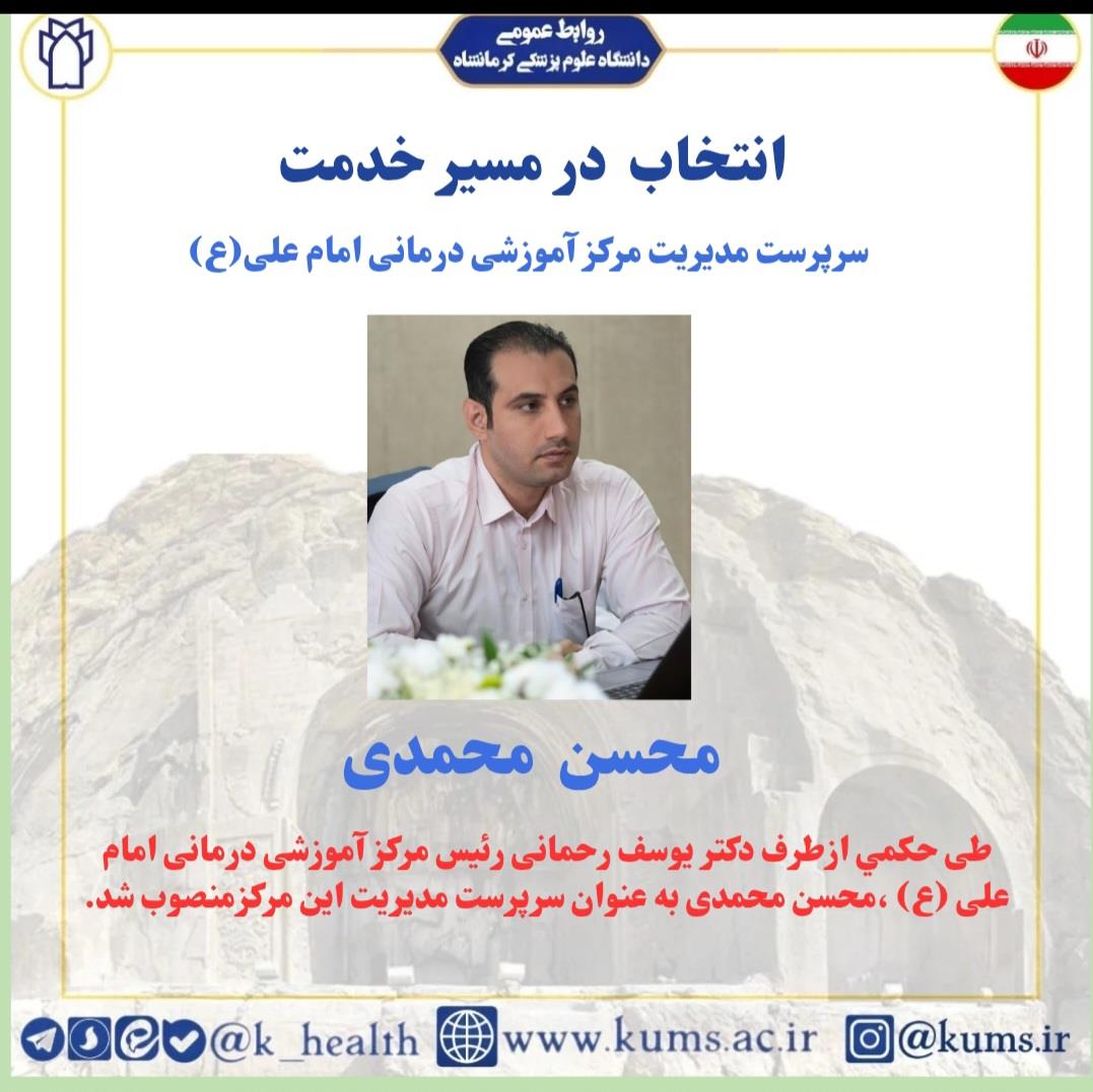 طی حکمی از طرف دکتر یوسف رحمانی رئیس مرکز آموزشی درمانی امام علی (ع) ،محسن محمدی به عنوان سرپرست مدیریت این مرکز منصوب شد / تقدیر از زحمات پورزاد شریعت