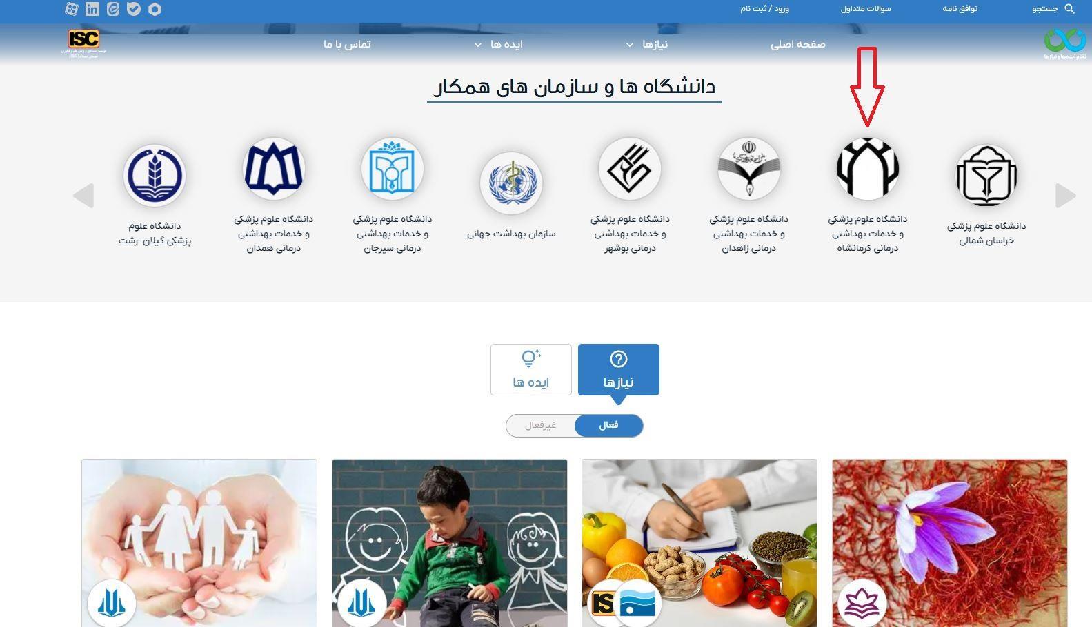 نامه ها و طرح های فناورانه و غیره در این سامانه و %50 تا پایان برنامه و در راستای توسعه مشارکت علمی و فناوری در سطح ملی، دانشگاه علوم پزشکی کرمانشاه به عنوان یکی از مراکز علمی و درمانی پیشرو در غرب کشور، به جمع سازمانهای همکار سامانه ملی ایدهها و نیازها (نان) پیوست.
