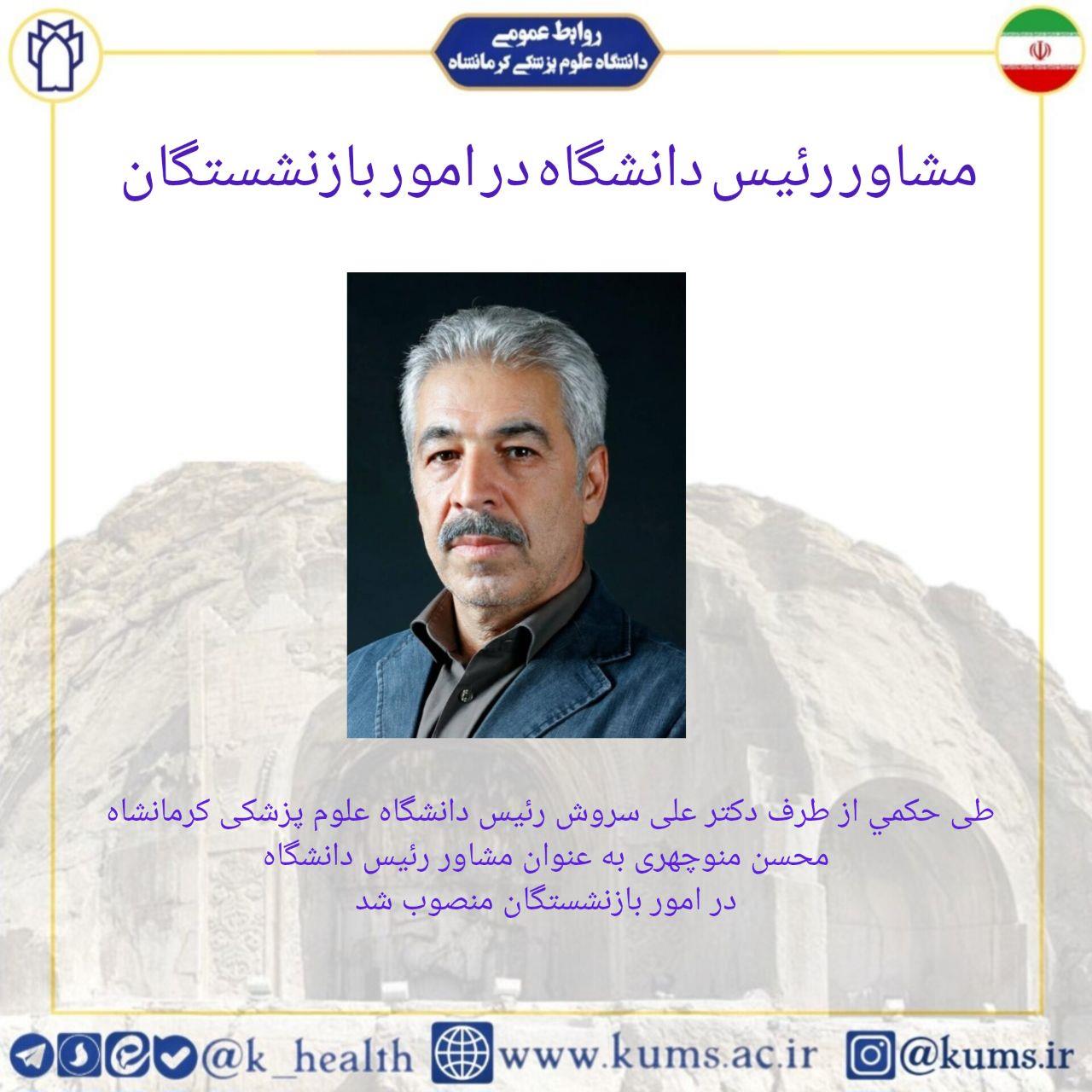 محسن منوچهری به عنوان مشاور رئیس دانشگاه در امور بازنشستگان منصوب شد.